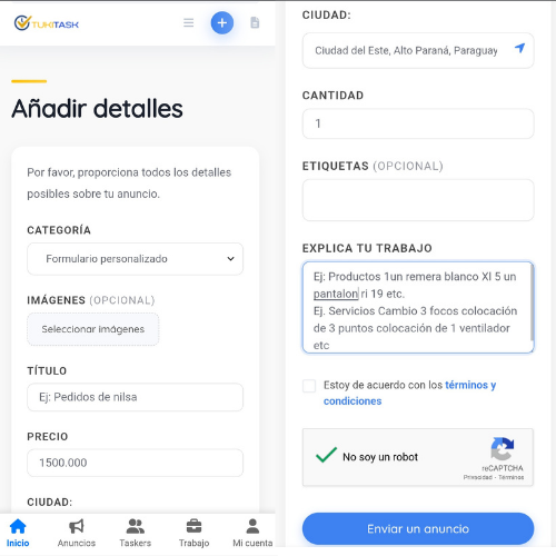 En Tukitask, los Taskers pueden vender productos o servicios que solo estarán disponibles una vez y por 12 horas.